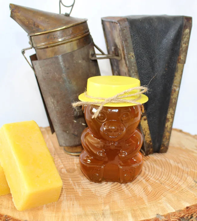 Experience the nostalgia and charm of our Glass Honey Bears! These delightful bears bring back cherished memories from our childhood, when a honey-filled bear jar always stood proudly in our pantry, filled with our favorite golden honey.